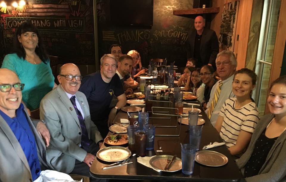 Our first Council meeting was Wednesday, and I had suggested we all meet at a flatbread-pizza-and- salad brew pub in Morgantown's Wharf District for dinner. I knew they could accommodate a crowd. I barely got out of bed most of the day. Twenty people showed up for dinner: the seven Councilors, spouses, some children and friends. I was happy that we could all relax together without the rancor that plagued the last council.